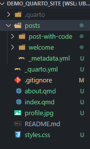 quarto create-project PROJECT_NAME --type website:blog