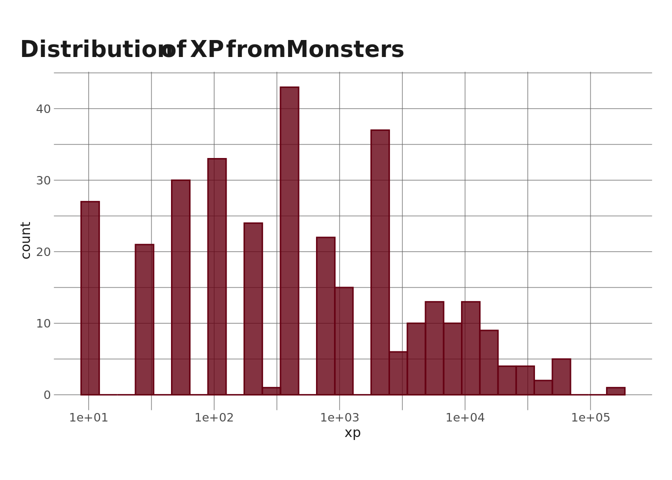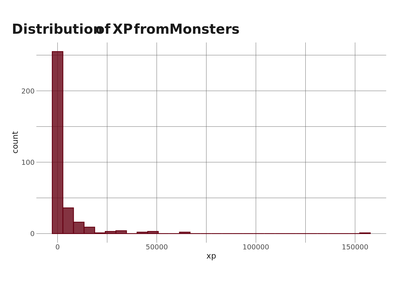 title = "Distribution of XP from Monsters"