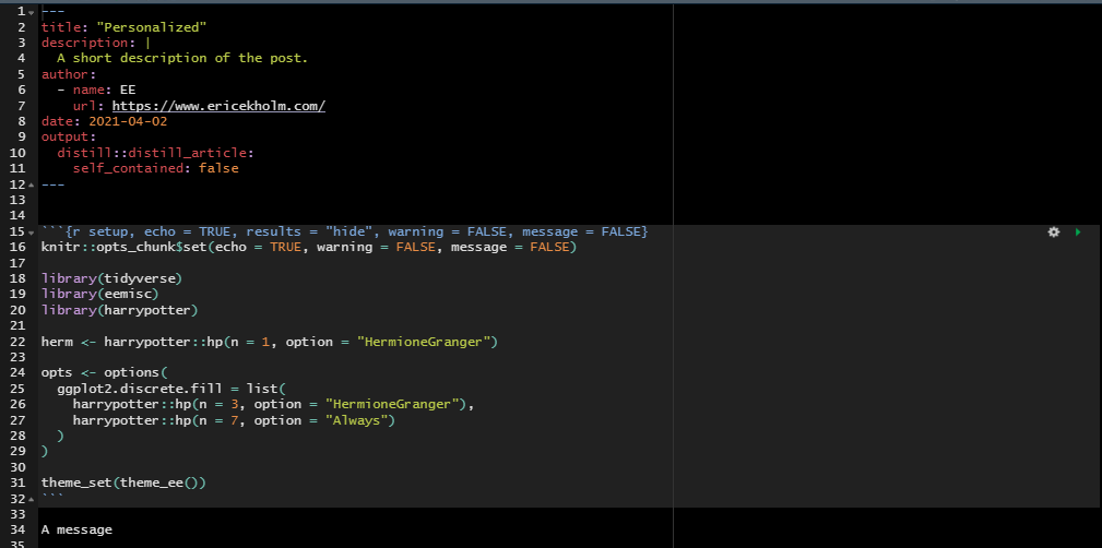 If you’re interested in adapting this function, this is the code you’ll want to change to specify whatever options you prefer in your Rmd files/blog posts. You’ll also need to un-comment the ```s.