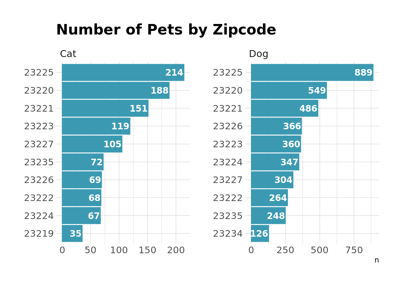 title = "Number of Pets by Zipcode",